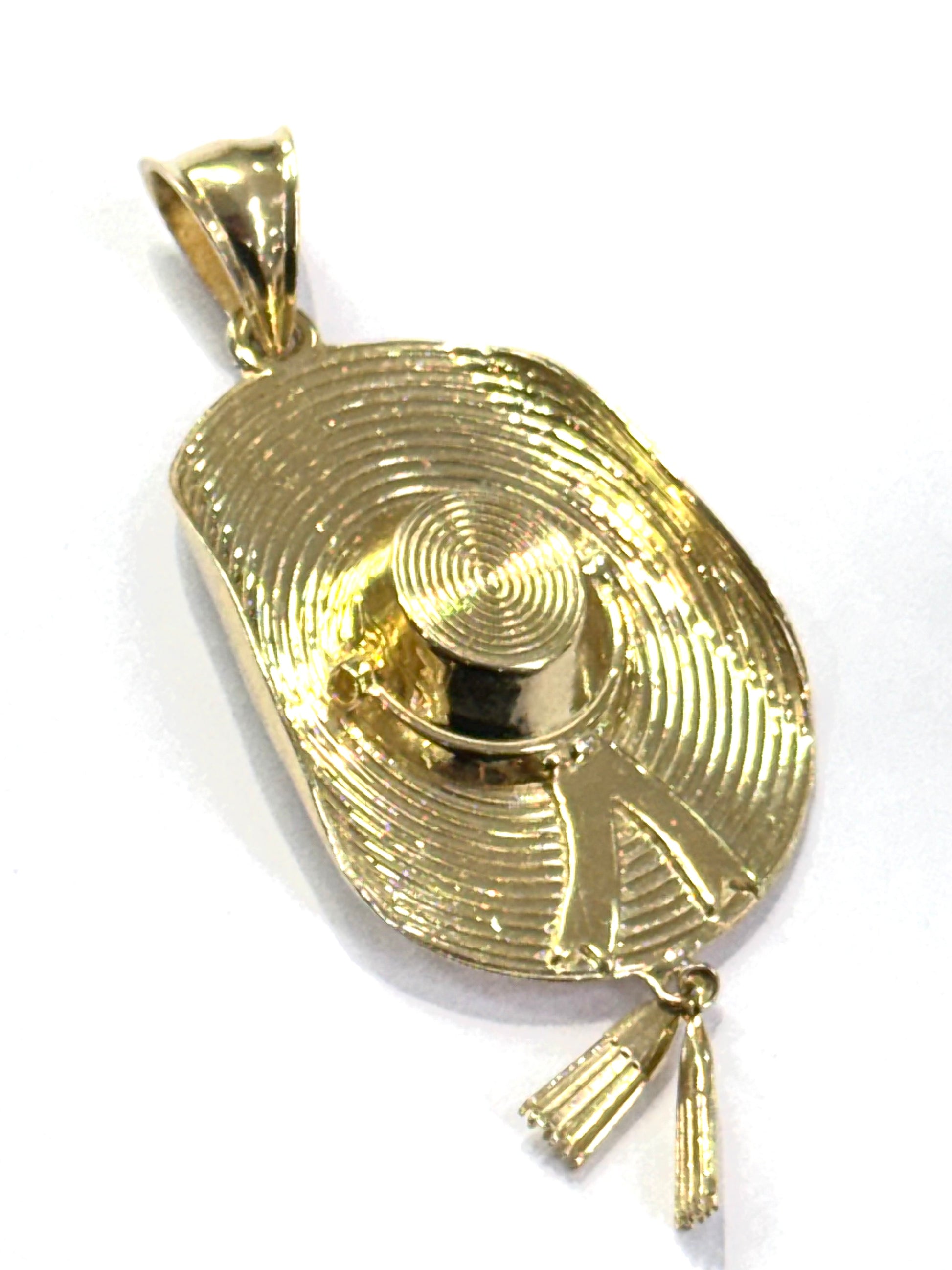 El Sombrero Mexicano Oro 14k es un dije X-grande de 6 cm, elaborado en oro auténtico de 14 kilates. Su diseño detallado resalta la cultura y tradición mexicana, ofreciendo un toque único y elegante a tu estilo.